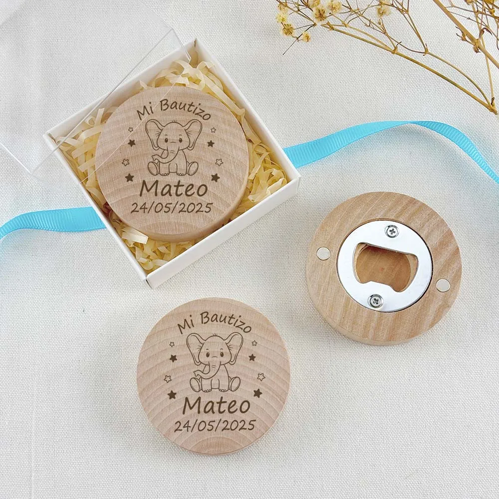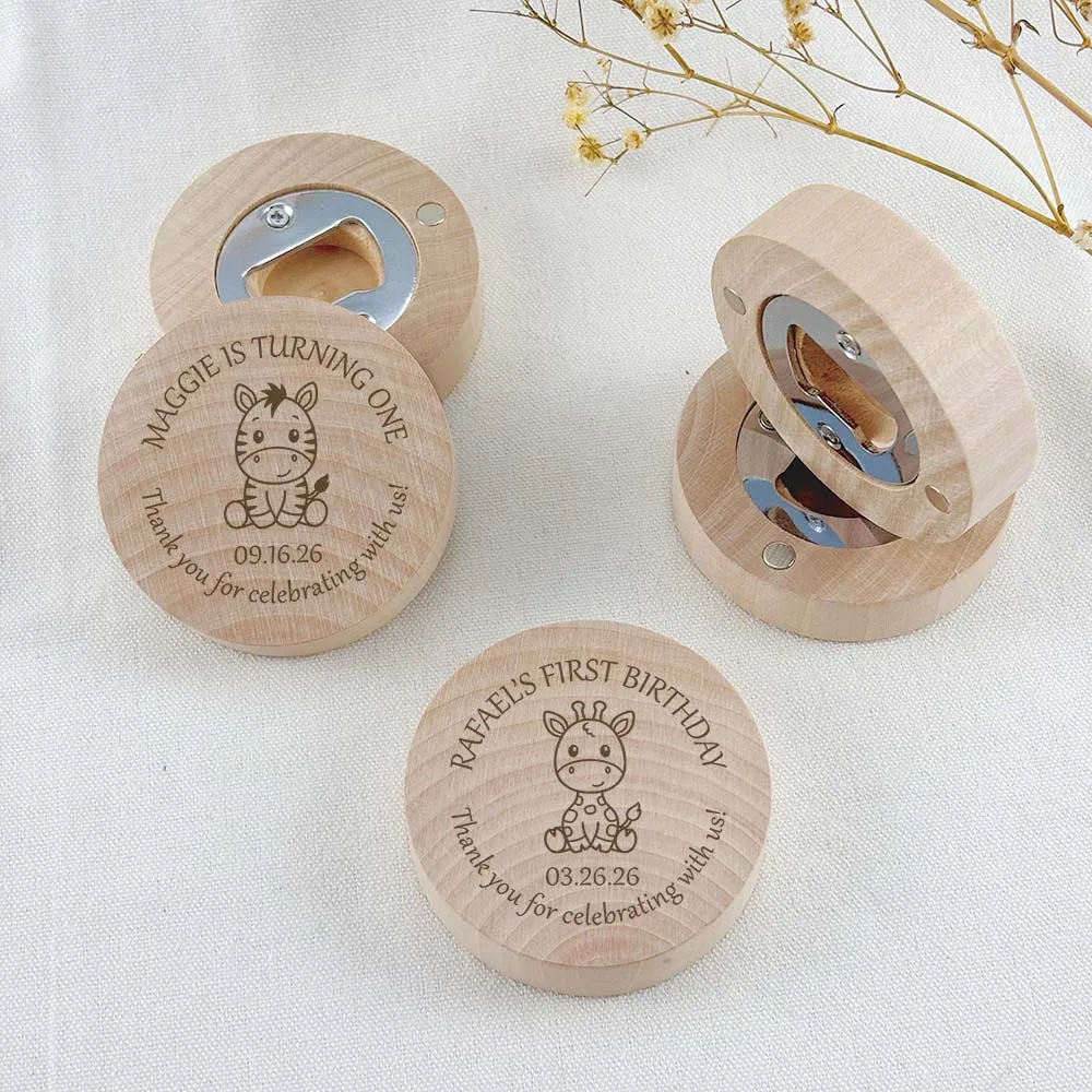 Baby Shower Party Favors First Birthday Baptism Souvenirs Personalized Magnet Bottle Openers Custom Baby Animal Wooden Magnets