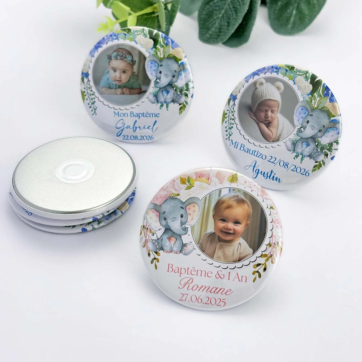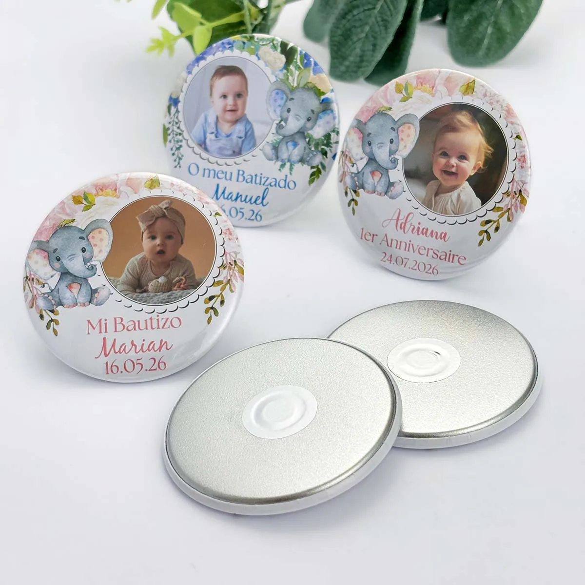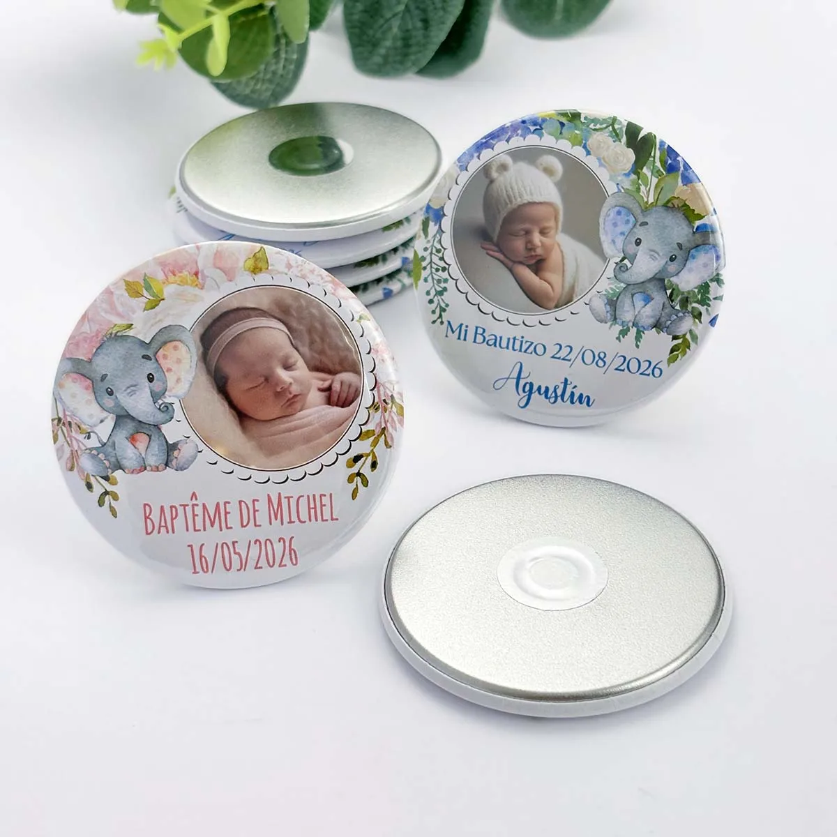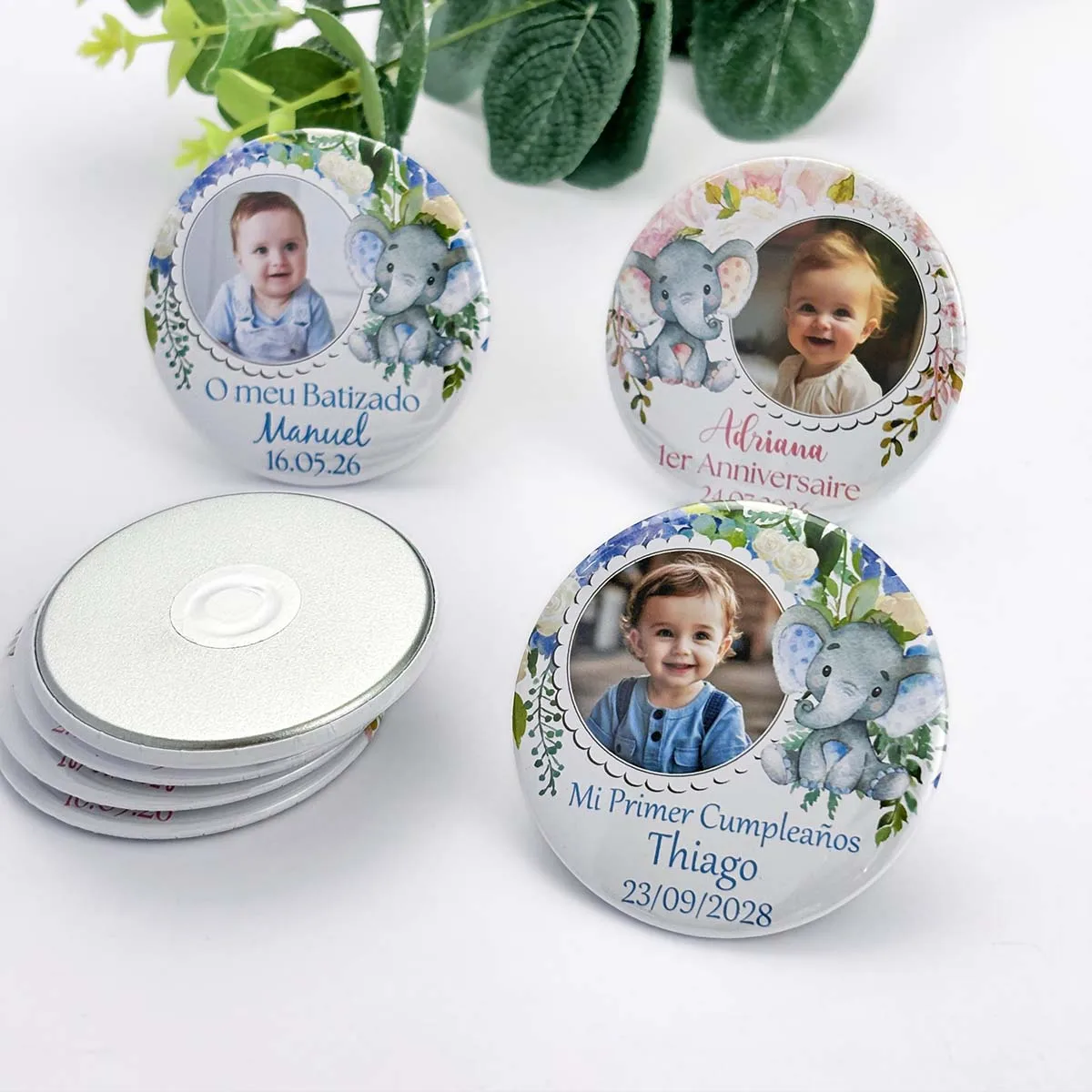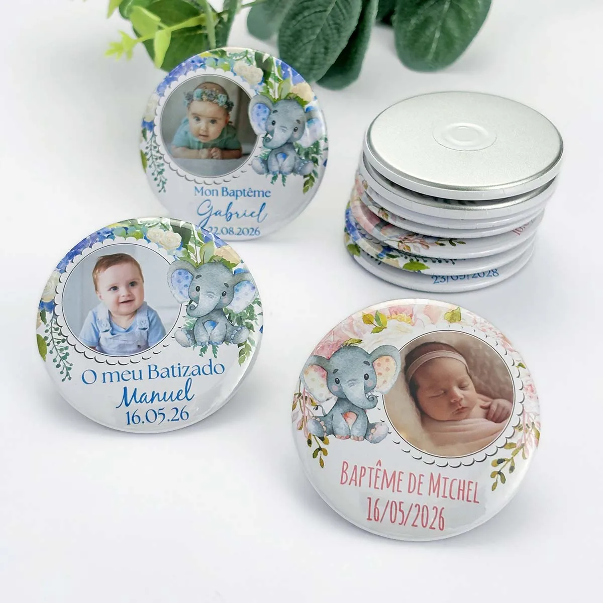 Baptism Souvenirs Custom Photo Magnets Baby Elephant with Flower Christening Guest Gifts Girl Boy First Birthday Party Favors