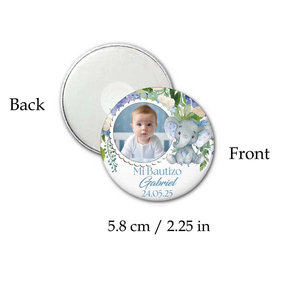 Be the first to review “Baptism Souvenirs Custom Photo Magnets Baby Elephant with Flower Christening Guest Gifts Girl Boy First Birthday Party Favors”