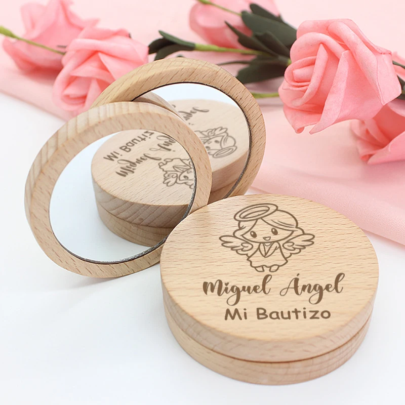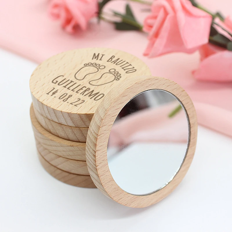 Baptism Souvenirs Personalized Wood Pocket Mirrors Baptism Favors Christening Gifts for Guests Customized Compact Makeup Mirrors
