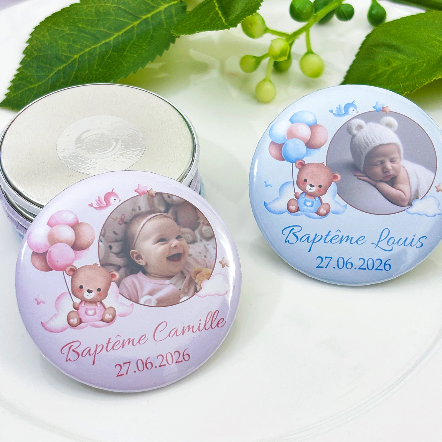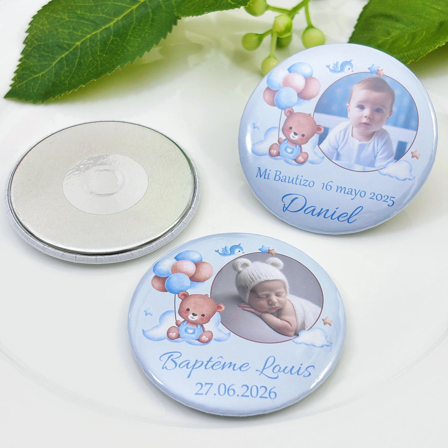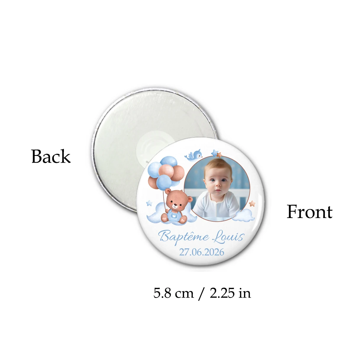 Custom Photo Fridge Magnet Girl Boy 1st Birthday Favor Bear and Balloon Personalized Magnets Baptism Favor Keepsake for Guest
