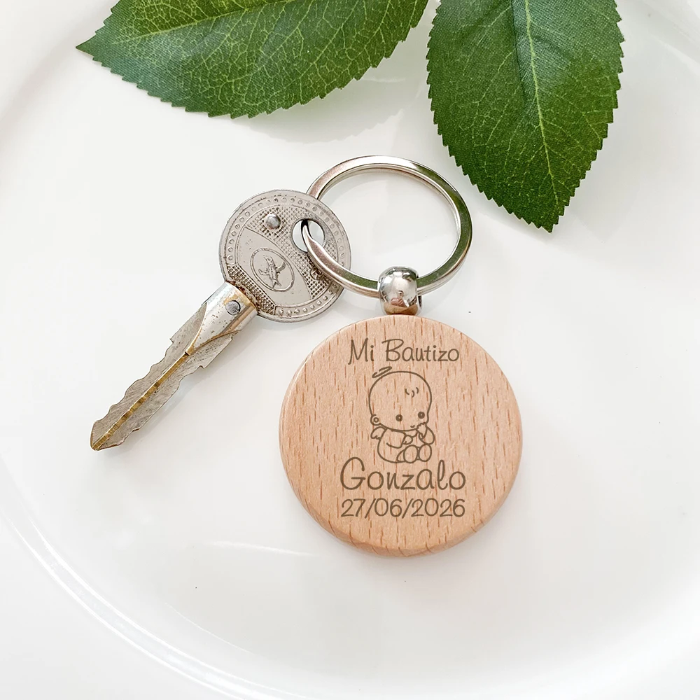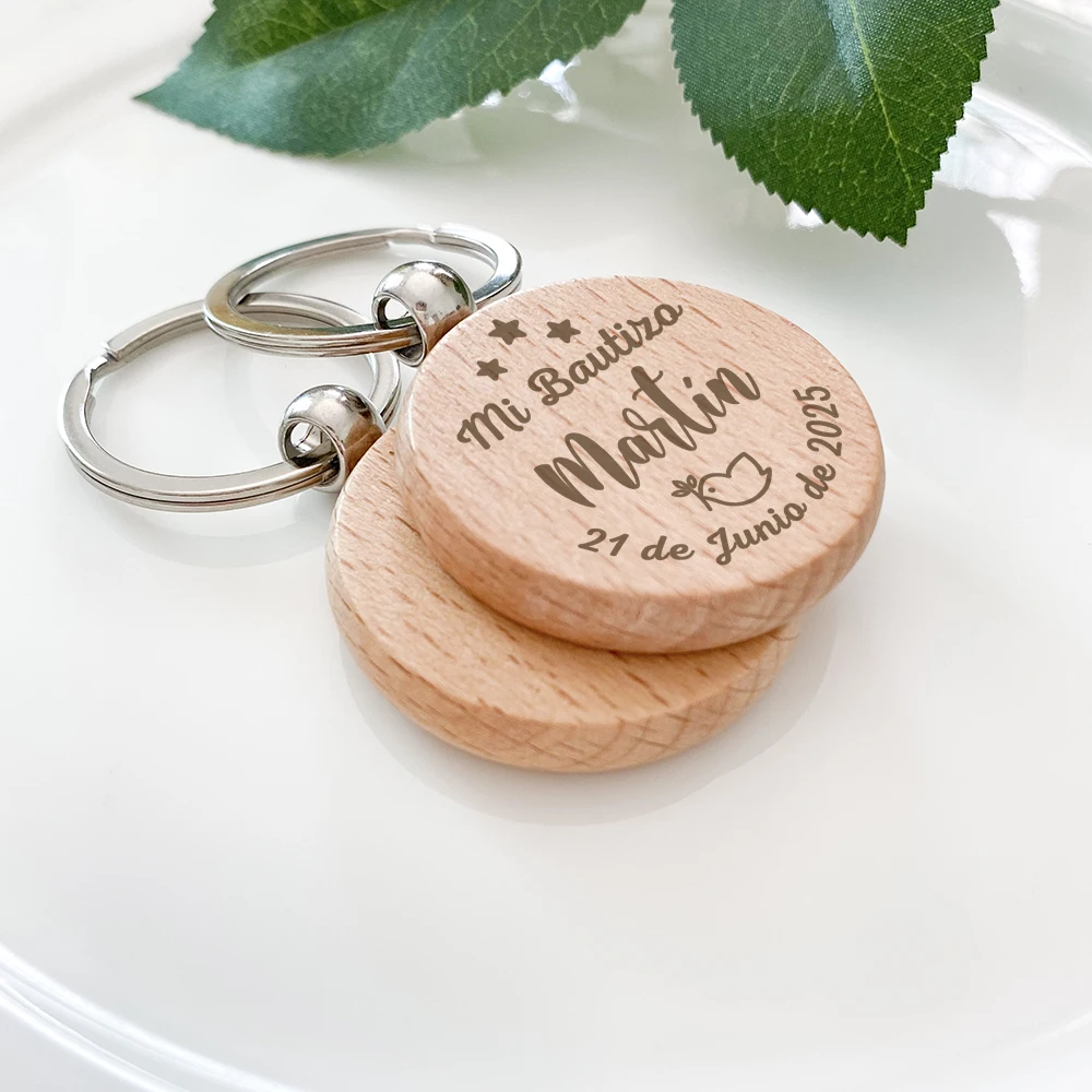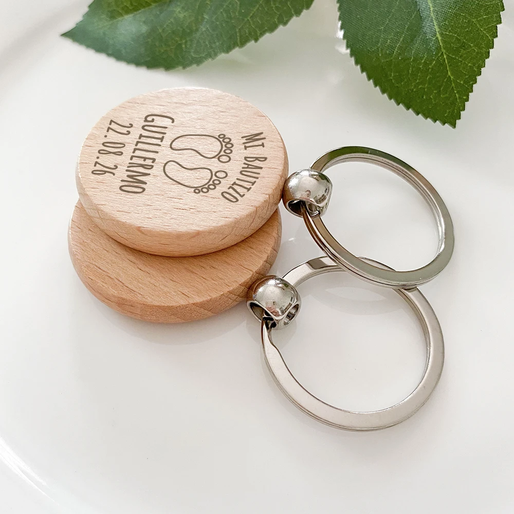 Custom Wooden Keychains Baptism Gifts for Guests Baby Christening Favors First Birthday Souvenirs Personalised Key Rings