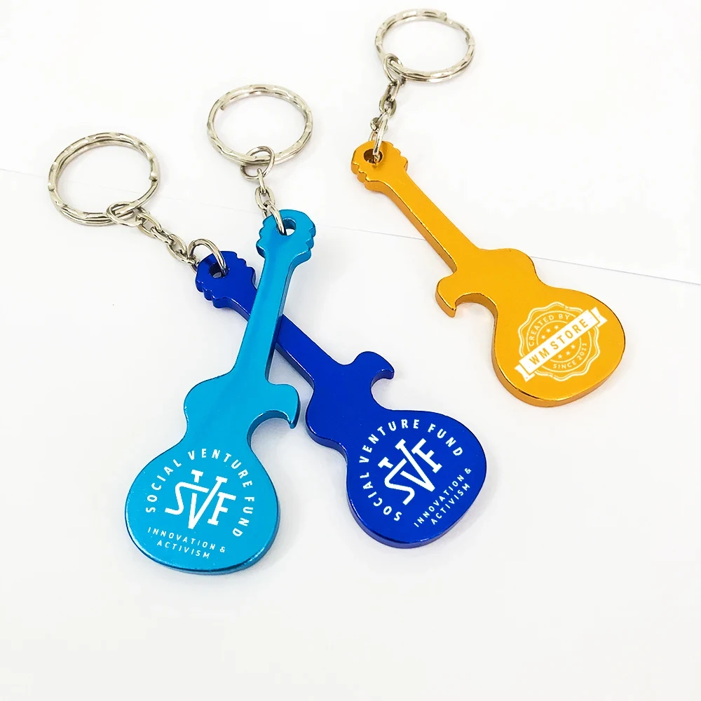 Customizable Business Promotional Gifts Personalised Key Ring Bottle Openers Guitar Shaped Keychains Custom Giveaways 50 Pieces