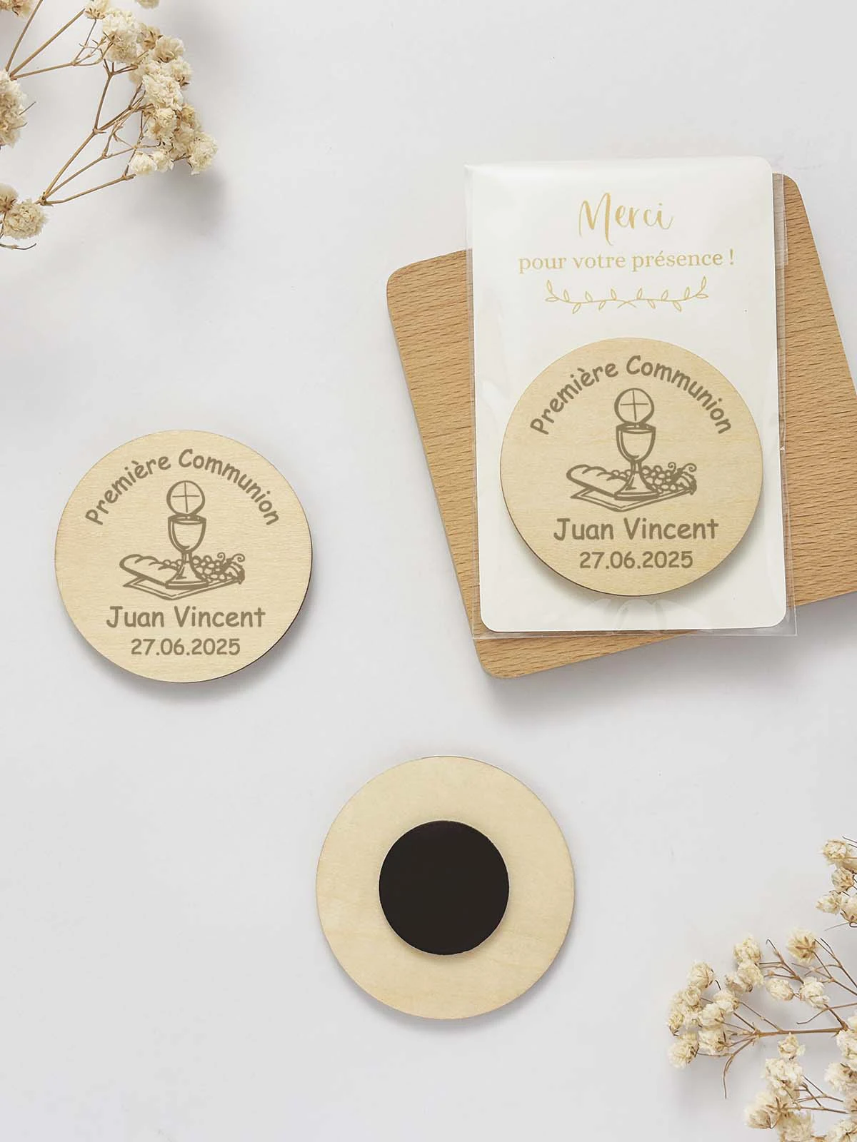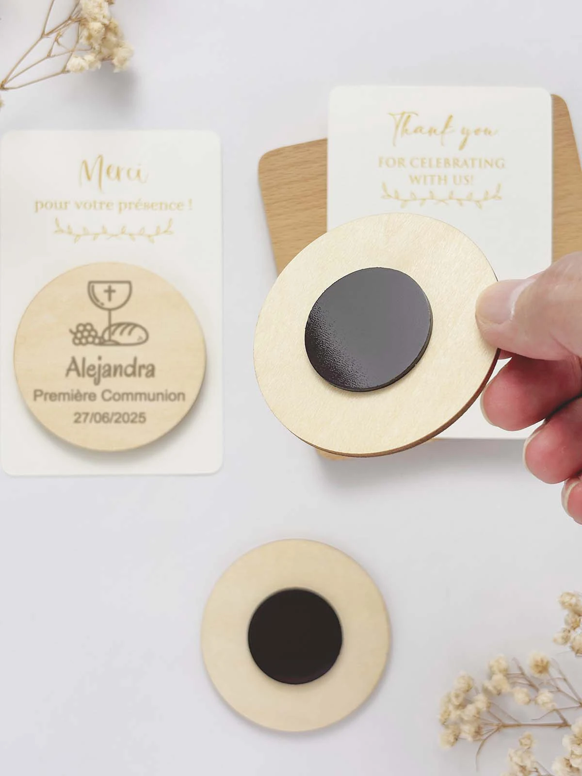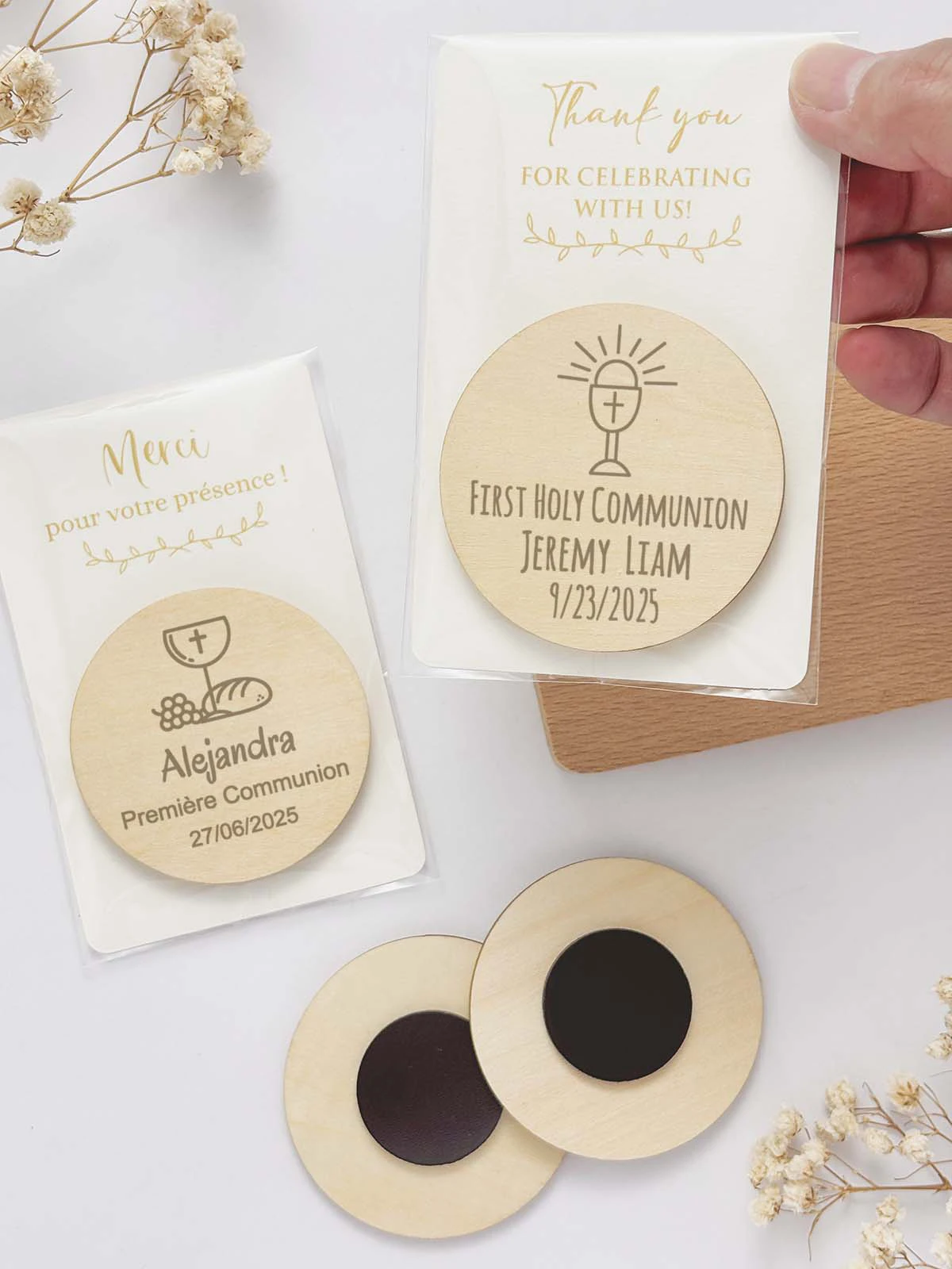 Personalized Communion Favors for Guests Custom Wooden Magnets with Thank You Cards First Communion Souvenirs