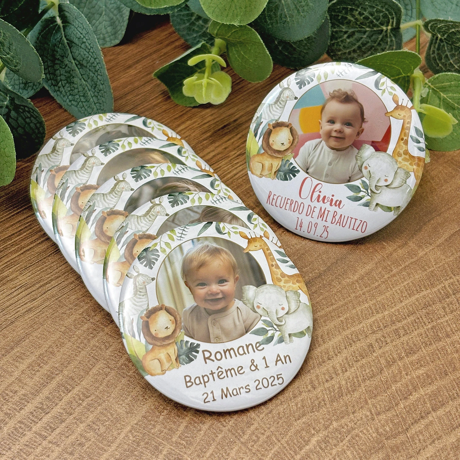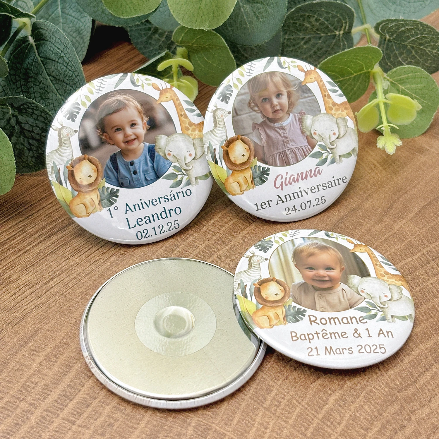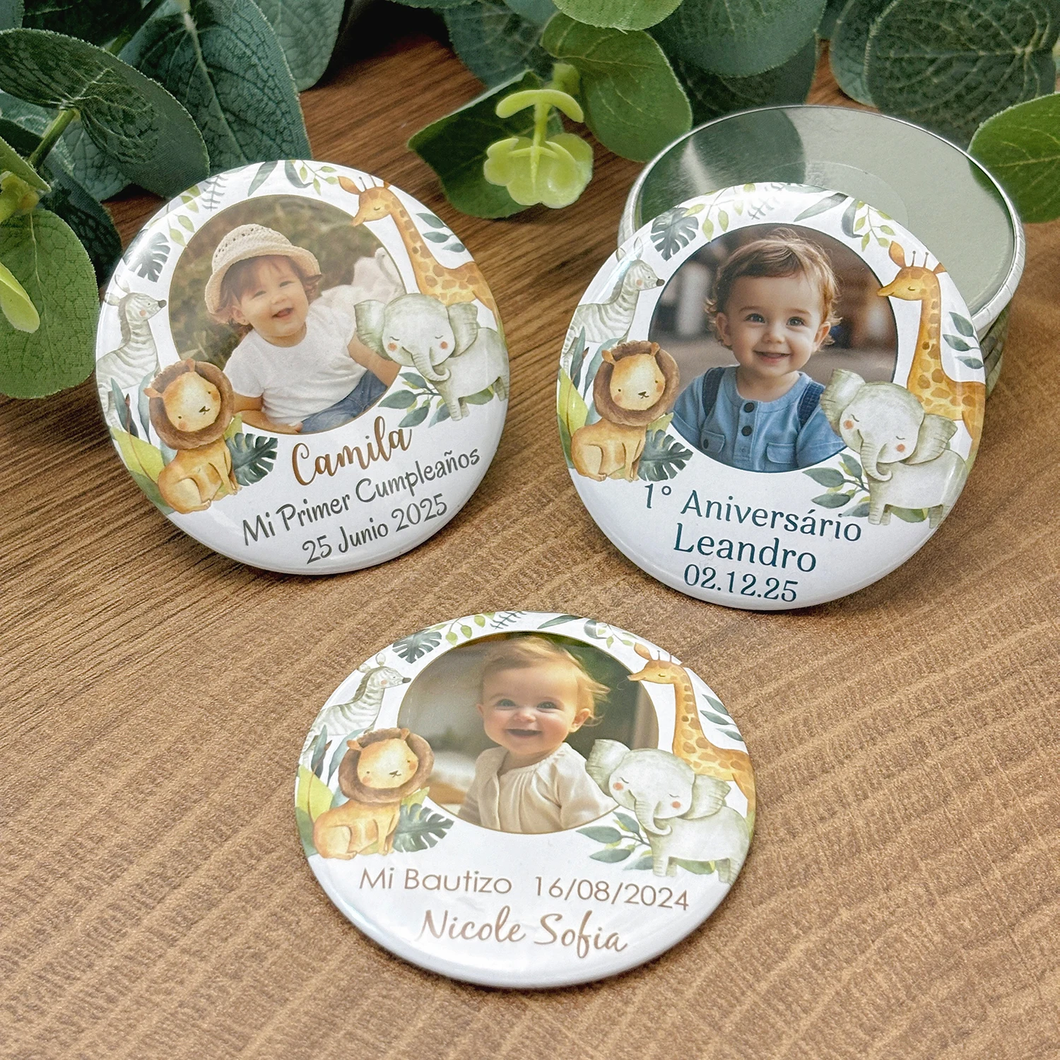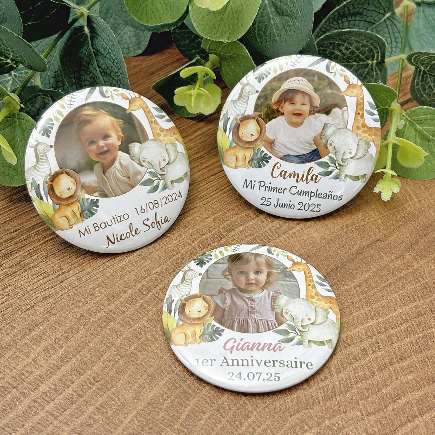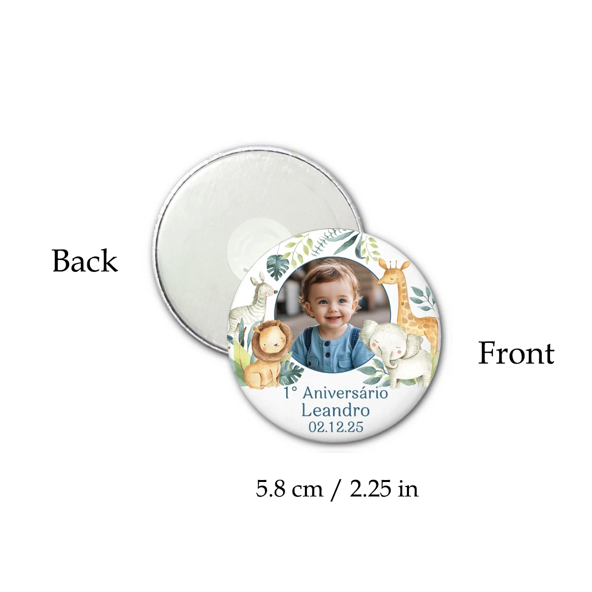 Personalized Fridge Magnets Jungle Safari Animals Themed Party Favor Boy Girl 1st Birthday Souvenir Custom Photo Baptism Favor