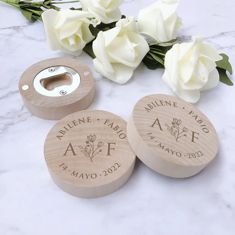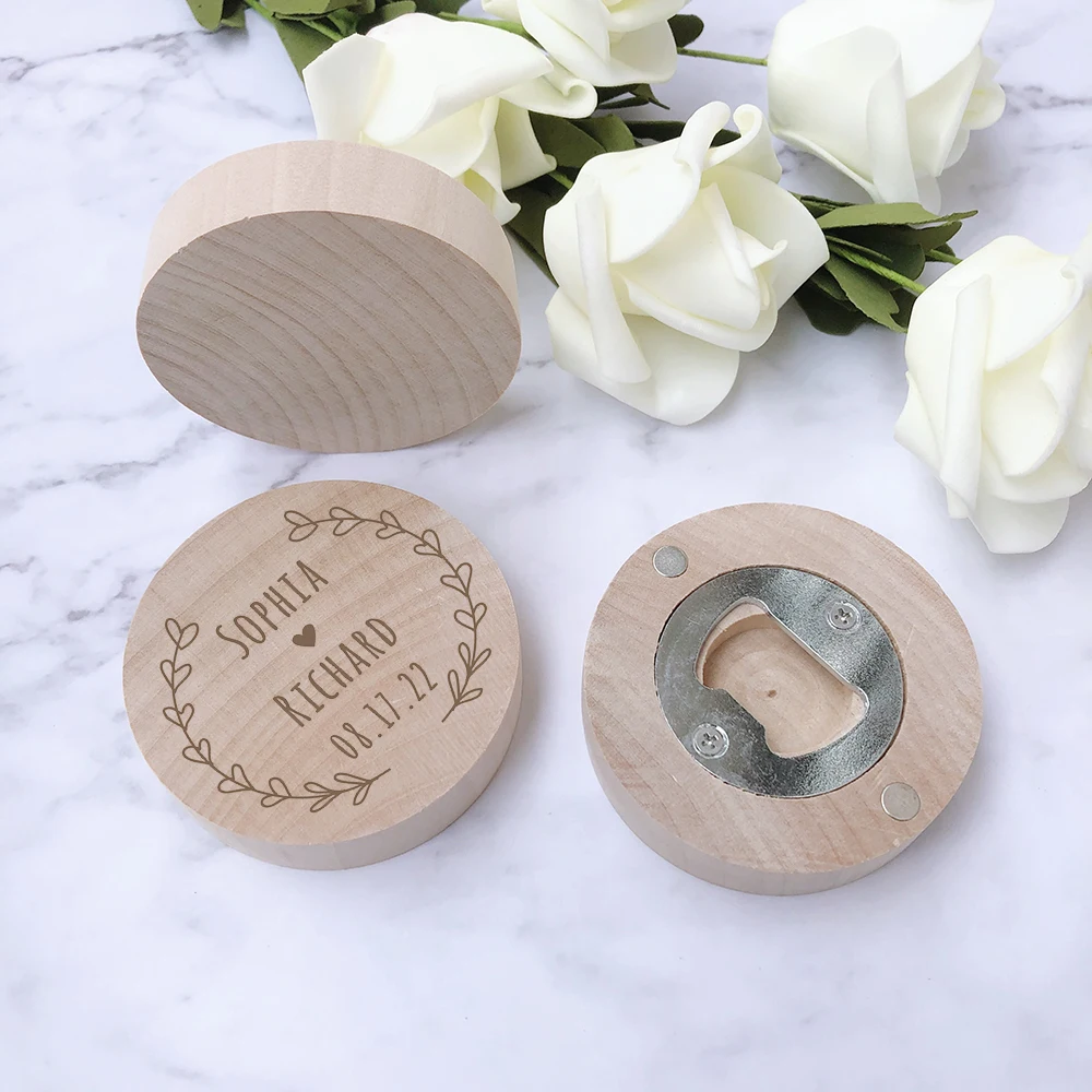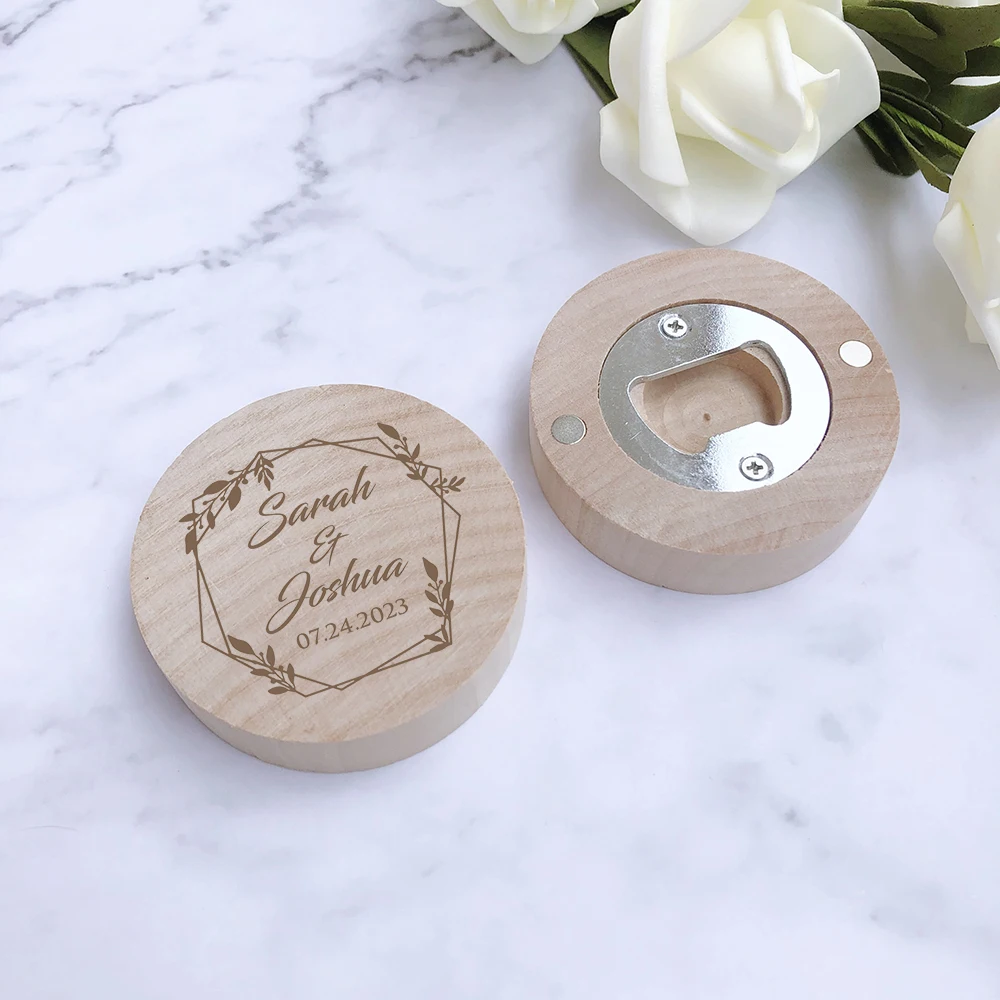 Wedding Favors for Guests Personalized Wooden Bottle Opener Fridge Magnets Customized Wedding Souvenir Gifts