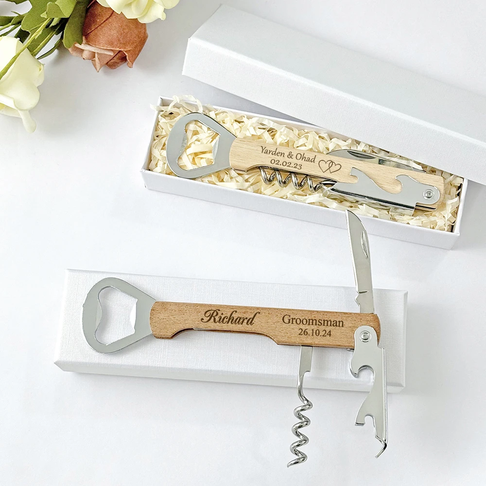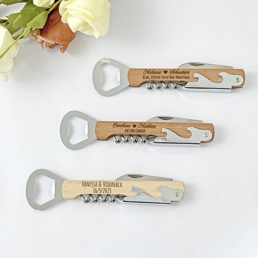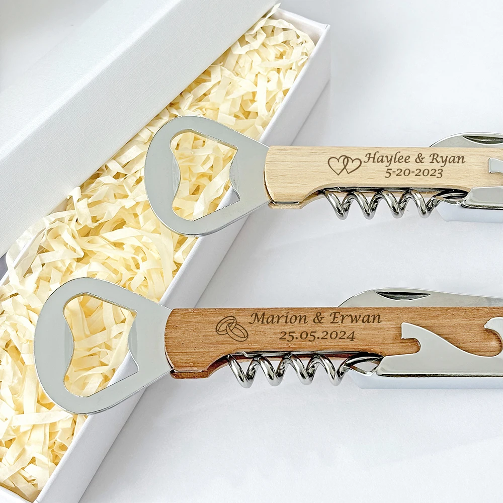Wedding Favors for Guests Personalized Wooden Wine Corkscrew Bottle Openers Wedding Souvenirs with Gift Boxes