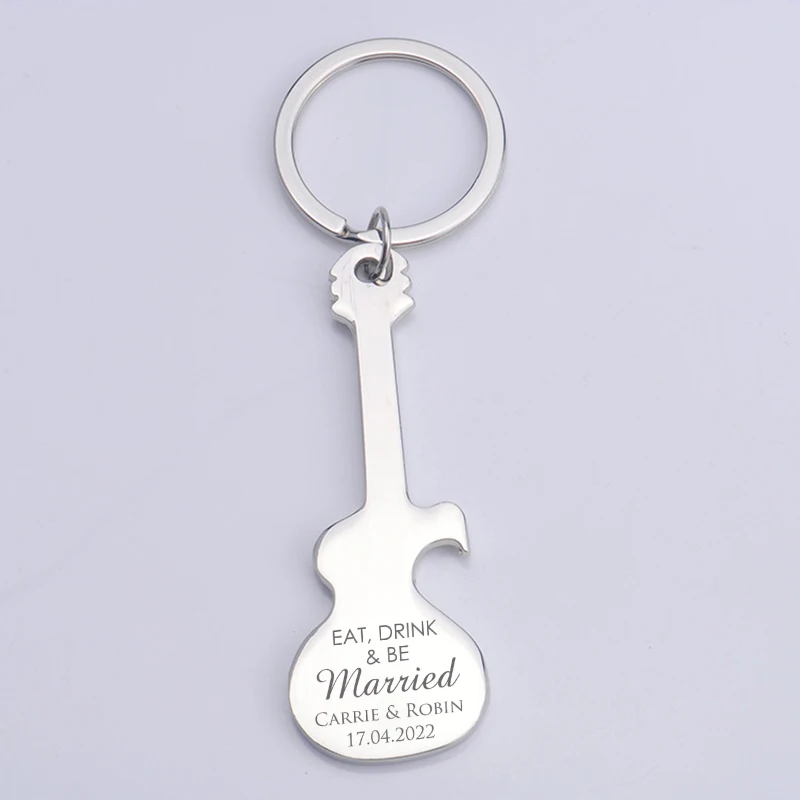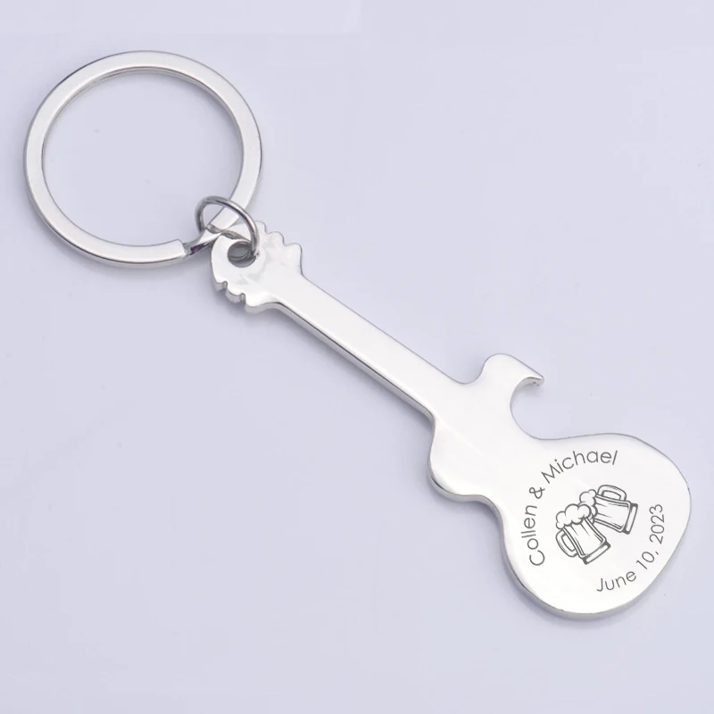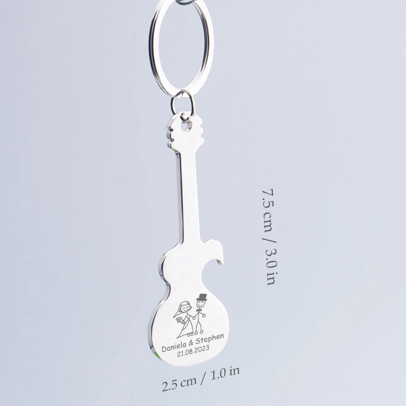 Wedding Gifts for Guests Wedding Souvenirs Custom Party Favors Personalized Silver Keychains Guitar Shaped Bottle Openers