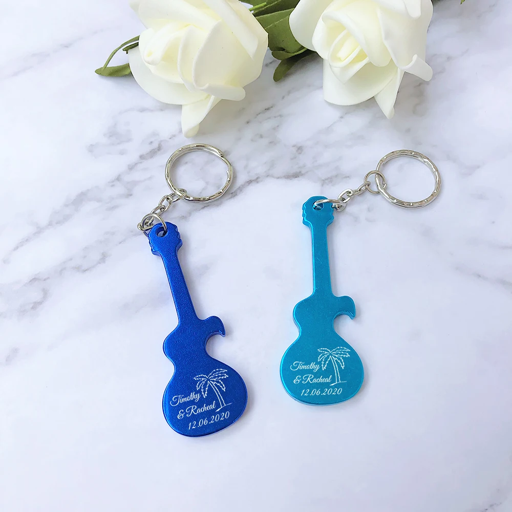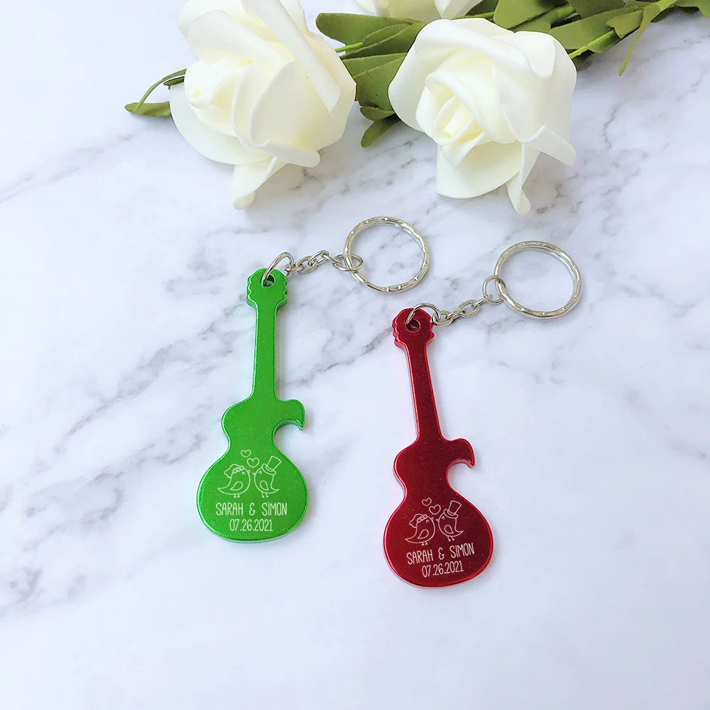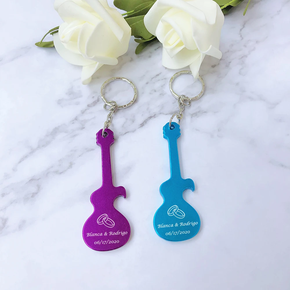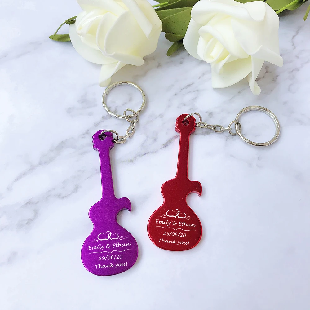 Wedding Guest Gifts Party Favors Custom Guitar Shaped Keychain Bottle Openers Wedding Souvenirs Personalised Key Rings