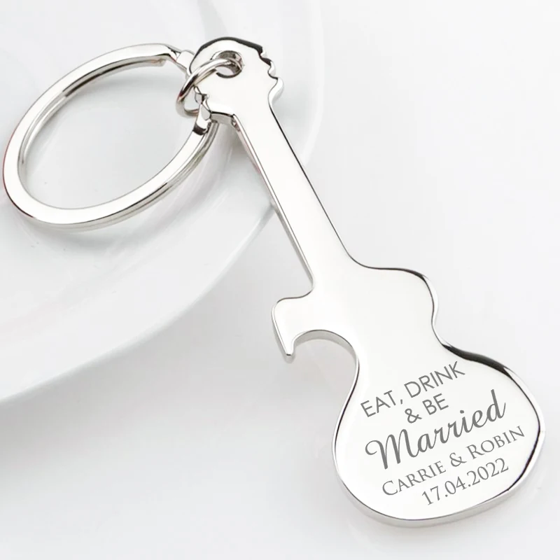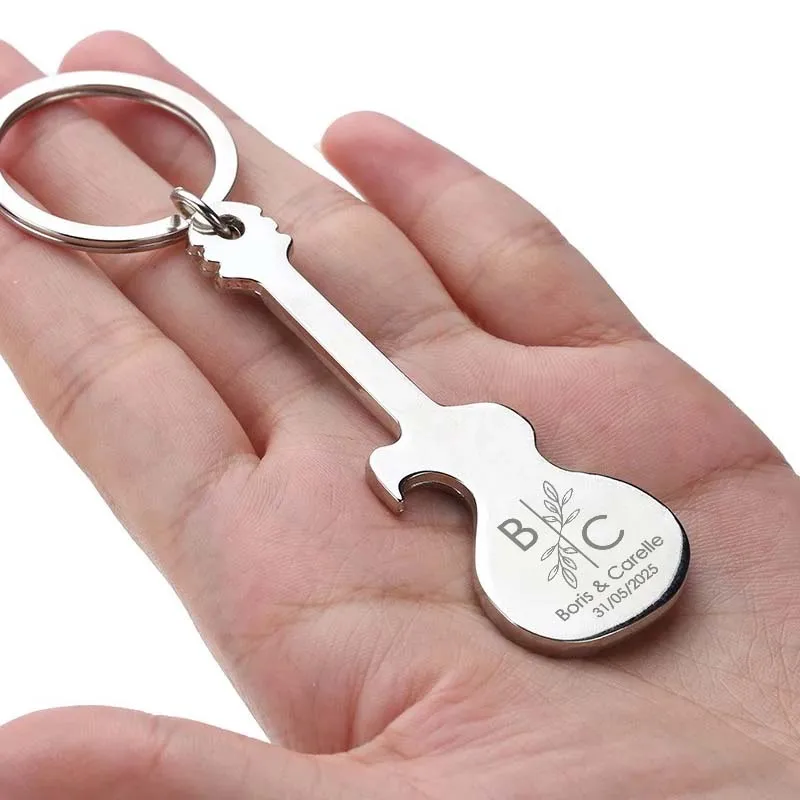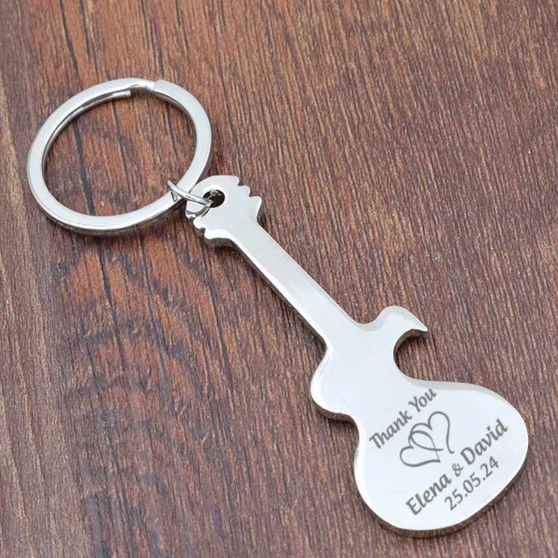 Wedding Souvenirs Personalized Guitar Shaped Keychain Bottle Opener Customized Wedding Gifts for Guests Music Themed Party Favor